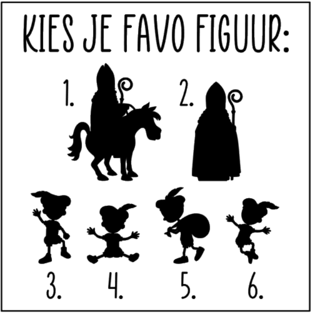 Er is keuze uit zes figuren en vier kleuren voor de tekst en naam.