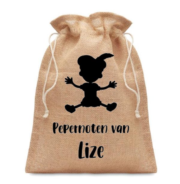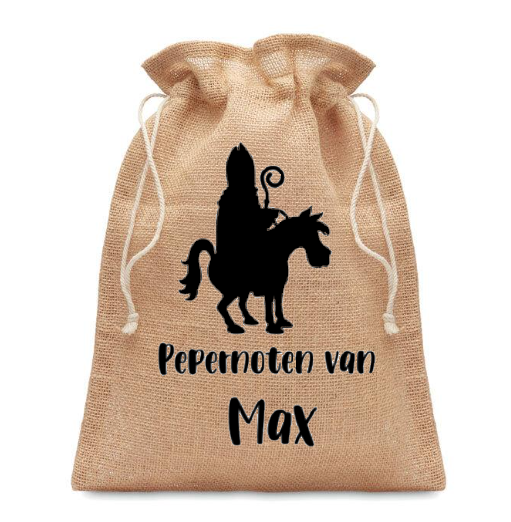Bewaar de pepernootjes of een klein cadeautje in dit jute zakje. Leuk als schoencadeautje of bij de intocht van Sinterklaas.