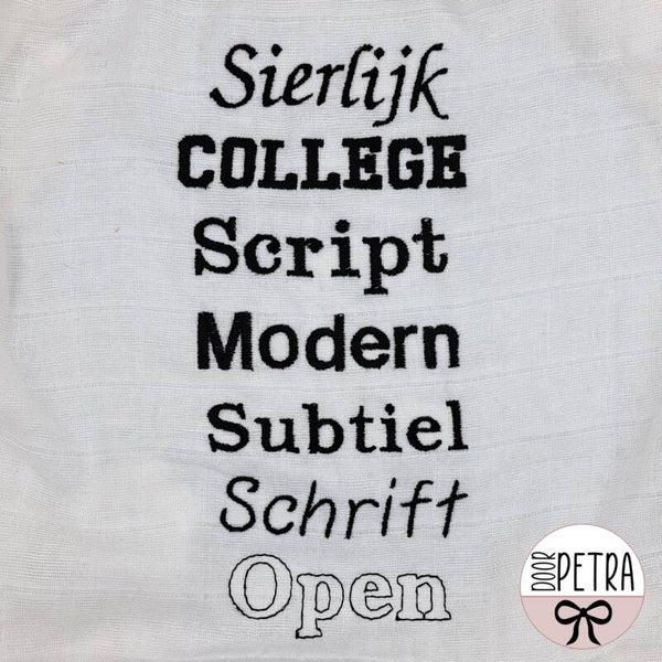 - De naam die wordt ingevuld, wordt letterlijk gekopieerd en gebruikt voor het borduren via de borduurmachine.